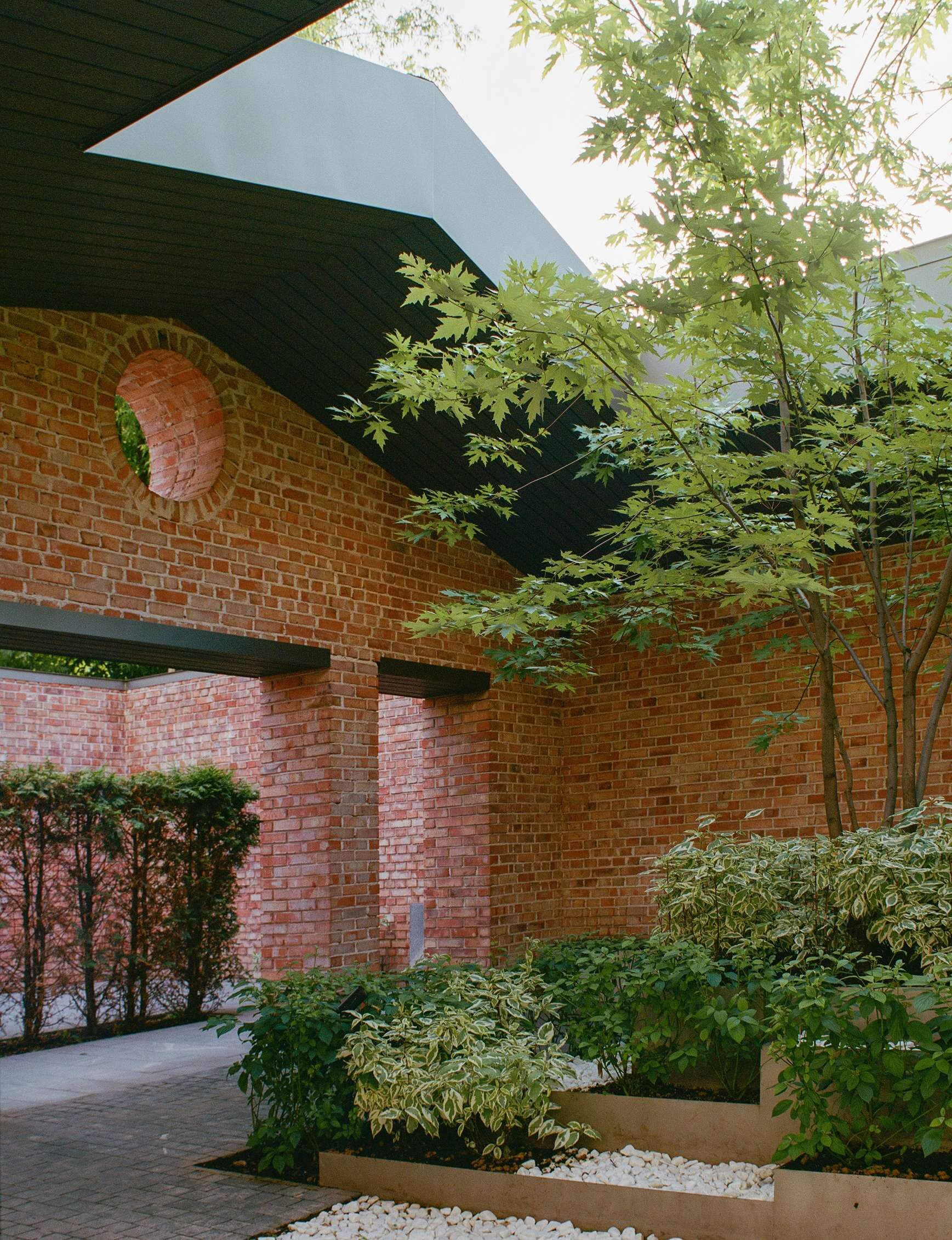 С учетом большого количества люков и ливневых лотков скорректировали геометрию покрытия, удержав оси, направление и целостность рисунка. Детально проработали фрагменты мощения для точного решения узлов примыкания.